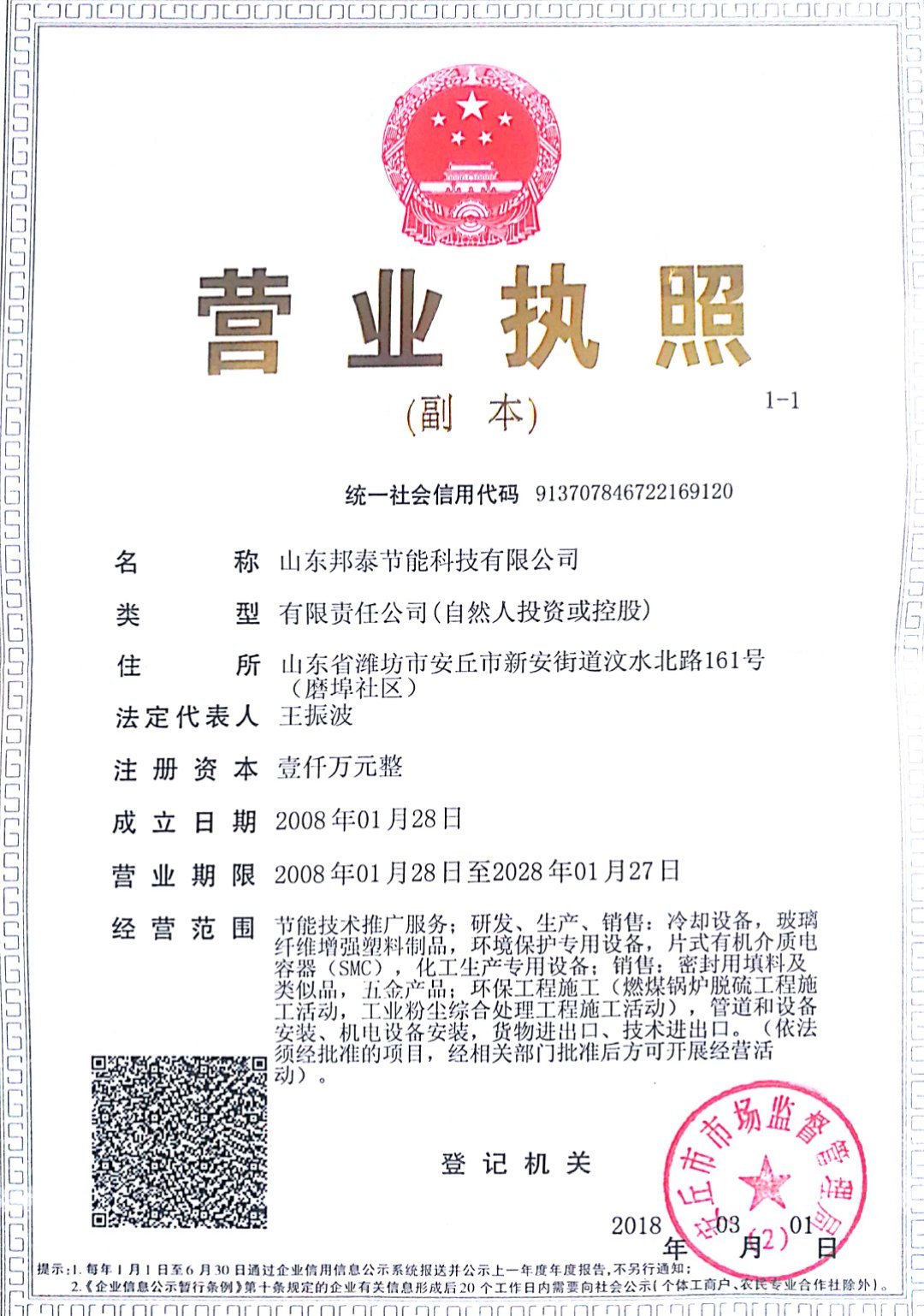 山東邦泰節(jié)能科技有限公司是一家集不銹鋼冷卻塔,全鋼冷卻塔,玻璃鋼冷卻塔,水輪機(jī)冷卻塔,無(wú)動(dòng)力節(jié)能冷卻塔設(shè)計(jì),制造,服務(wù)于一體的現(xiàn)代化企業(yè),主要有不銹鋼冷卻塔,玻璃鋼冷卻塔,水輪機(jī)節(jié)能冷卻塔,圓形,方形,逆流式,橫流式玻璃鋼冷卻塔,全鋼冷卻塔.邦泰公司位于山東省濰坊市安丘經(jīng)濟(jì)開發(fā)區(qū),環(huán)境優(yōu)美,交通便利。公司長(zhǎng)期致力于冷卻塔設(shè)備的研發(fā)生產(chǎn),多年來(lái)公司一直生產(chǎn)多種規(guī)格型號(hào)玻璃鋼冷卻塔產(chǎn)品及應(yīng)用于不同領(lǐng)域的冷卻設(shè)備,業(yè)務(wù)便及全國(guó)各地,并出口海外多個(gè)國(guó)家,受到了廣大客戶青睞。
