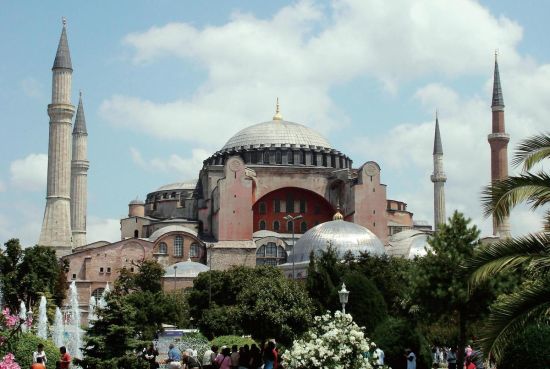 圣索菲亞大教堂位于土耳其最大城市伊斯坦布爾(即“君士坦丁堡”),始建于公元325年,是由羅馬帝國(guó)的君士坦丁大帝建造,后受損于戰(zhàn)亂。公元537年,東羅馬帝國(guó)(又名“拜占庭帝國(guó)”)的查士丁尼皇帝,為標(biāo)榜自己的文治武功將它進(jìn)行重建,作為東正教的宮廷教堂,持續(xù)了9個(gè)世紀(jì)。