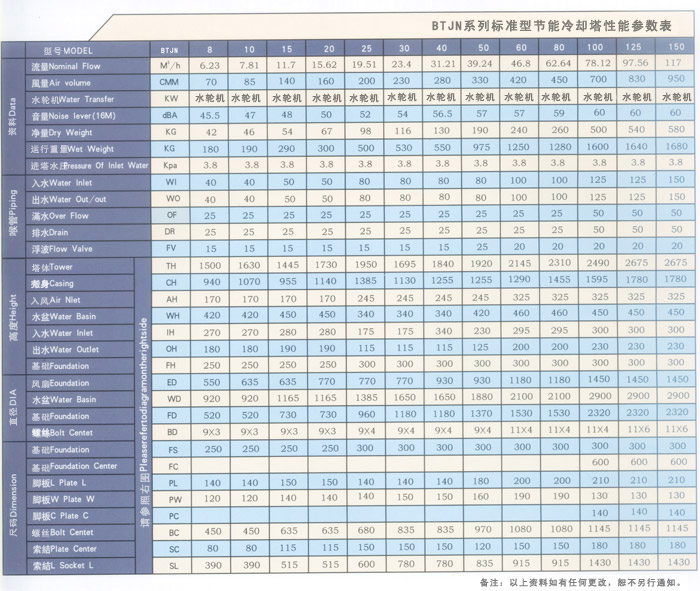 水輪機冷卻塔選型參數